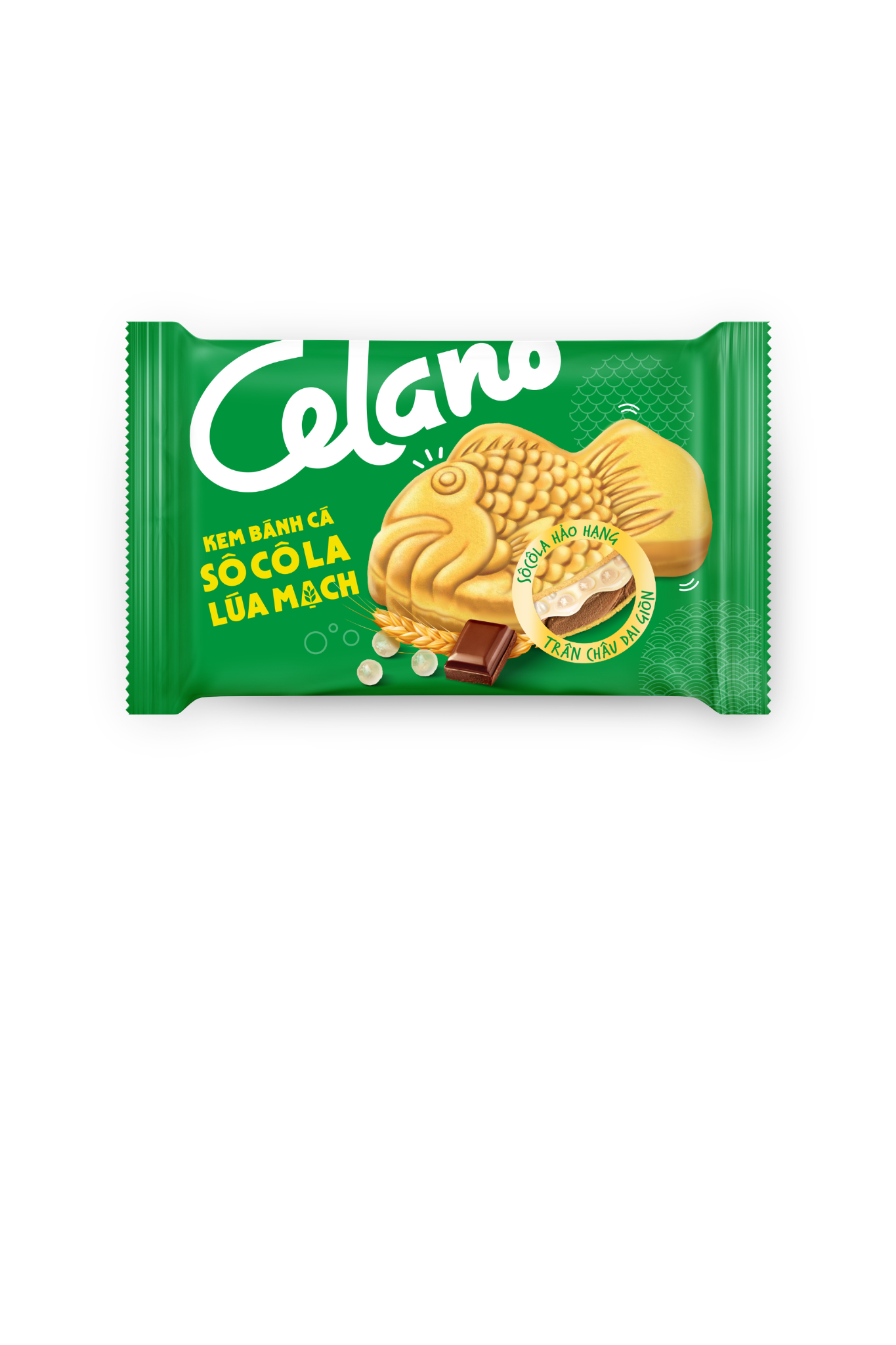 Kem lấy ý tưởng từ loại bánh Taiyaki nổi tiếng từ Nhật Bản. Bên trong là lớp kem vị sô cô la lúa mạch dẻo thơm, hòa quyện trân châu trắng dai giòn cùng lớp kem muối béo mịn đậm đà.