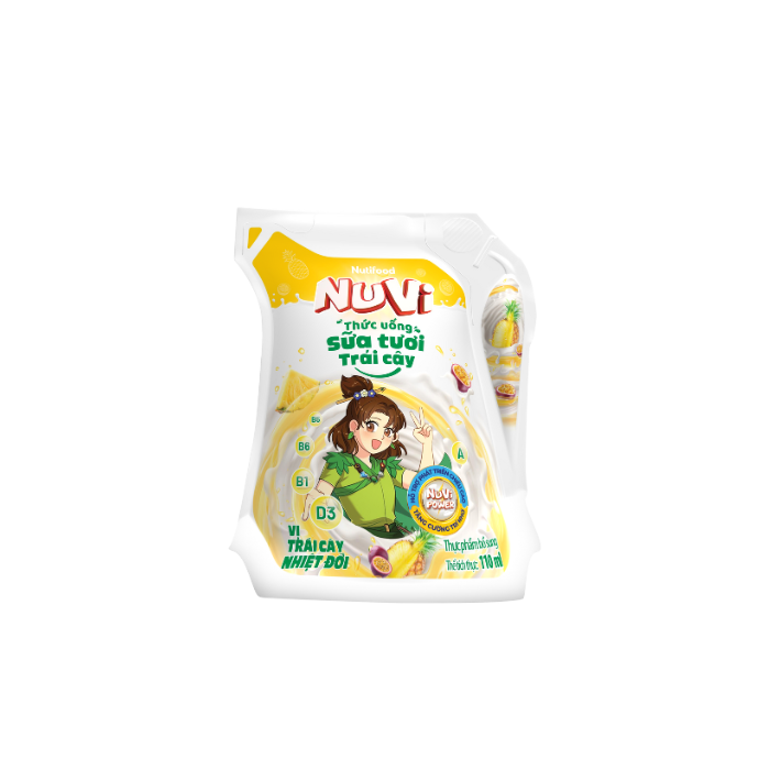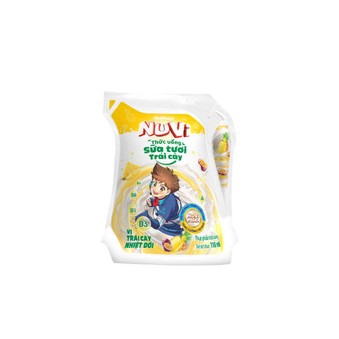 NuVi Thức Uống Sữa Tươi Trái Cây Vị Trái Cây Nhiệt Đới - Túi 110 ml