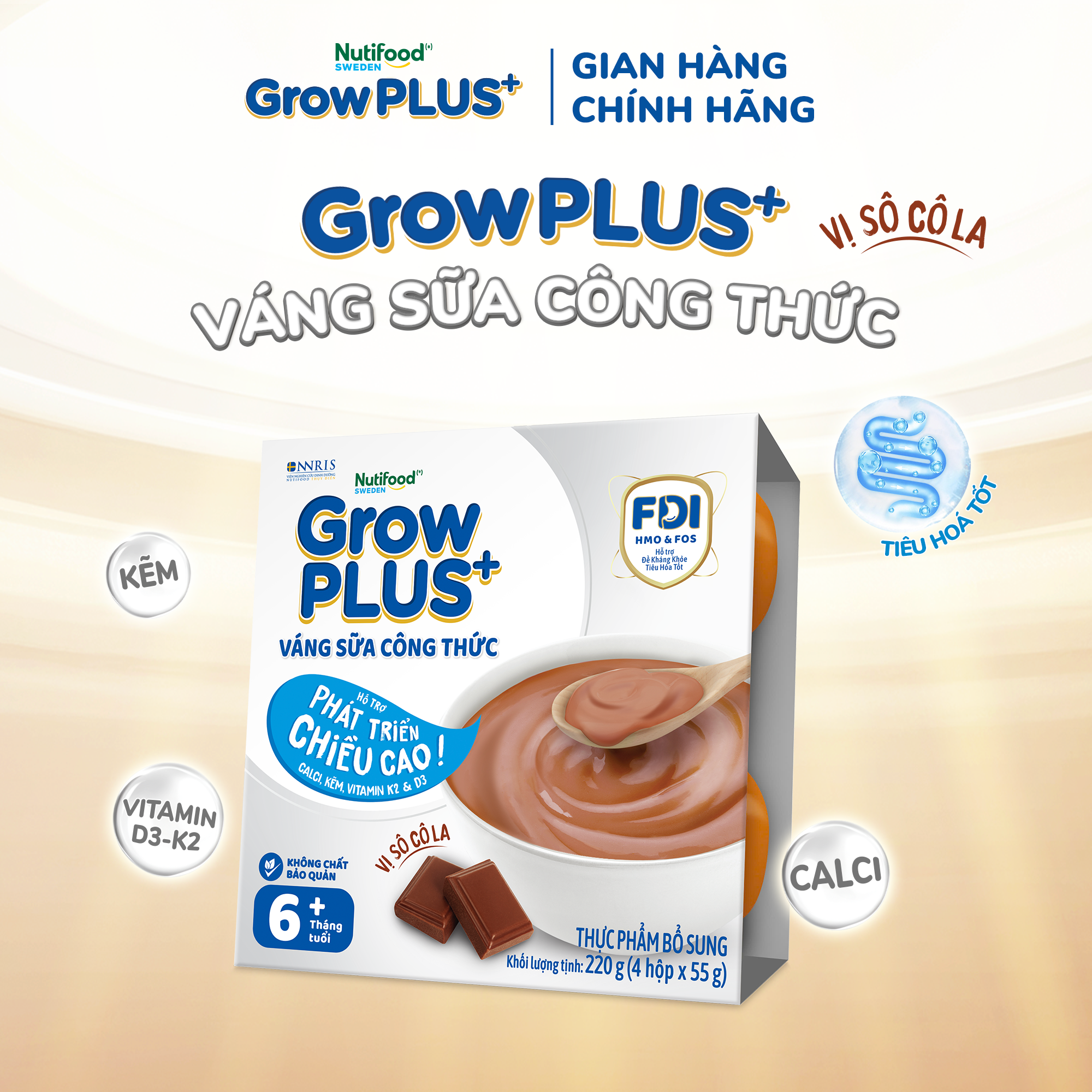 Quà tặng - GrowPLUS+ Váng sữa công thức Cao lớn vượt trội Socola - Hộp 55g