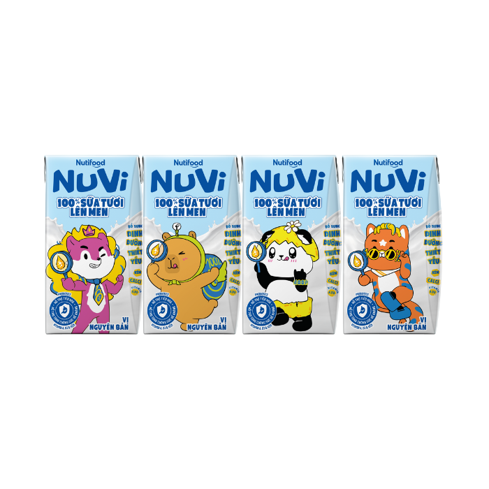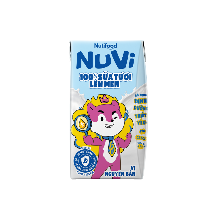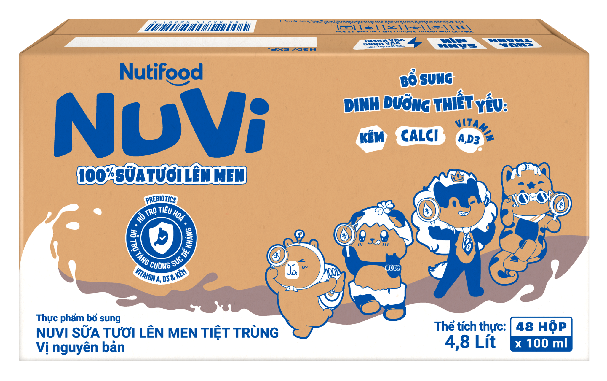 NuVi 100% Sữa Tươi Lên Men Vị Nguyên Bản x hộp 100ml - 48 hộp/thùng.