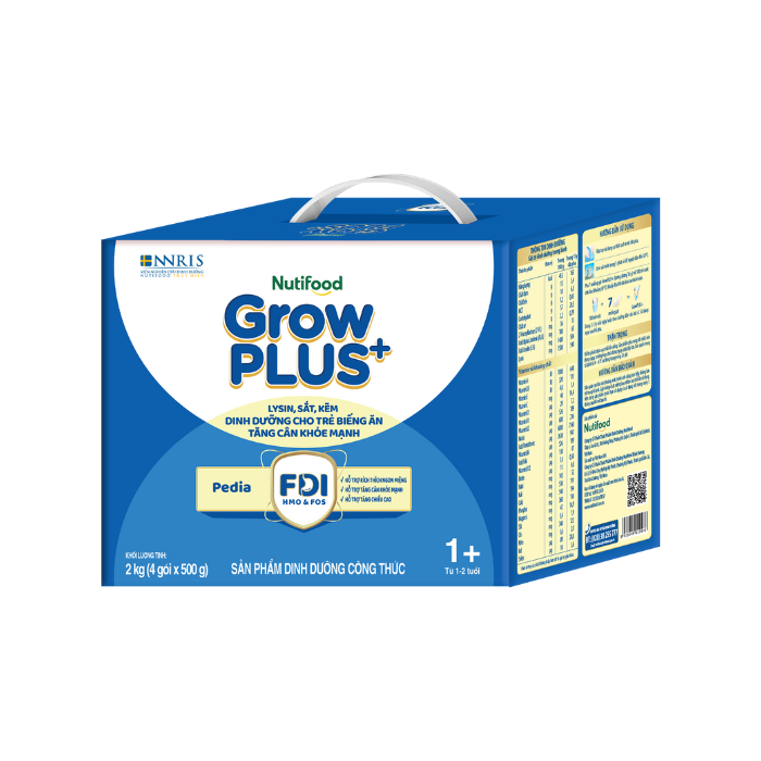 Sữa Bột Nutifood GrowPLUS+ Biếng Ăn (Xanh) cho trẻ tăng cân khoẻ mạnh 1+ Hộp giấy 2 KG