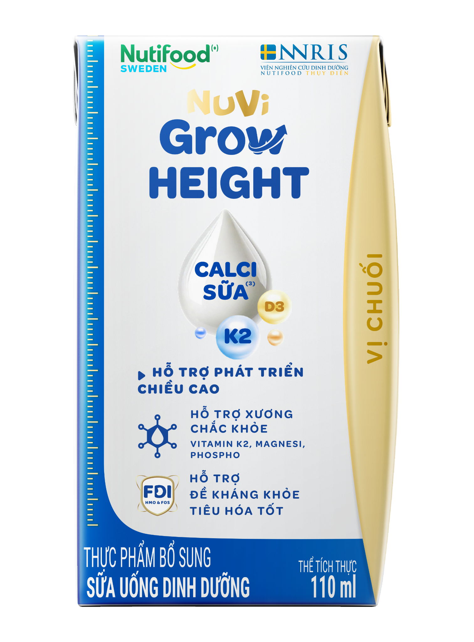 Thùng 24 hộp Sữa bột pha sẵn Nuvi Grow Height Vị Chuối hộp 110ml
