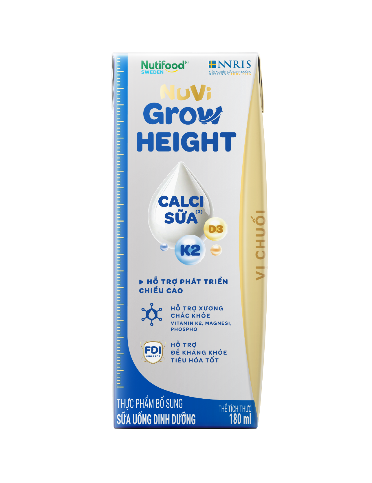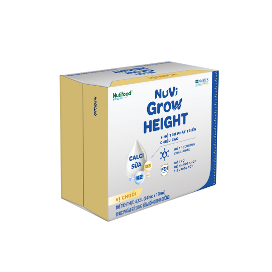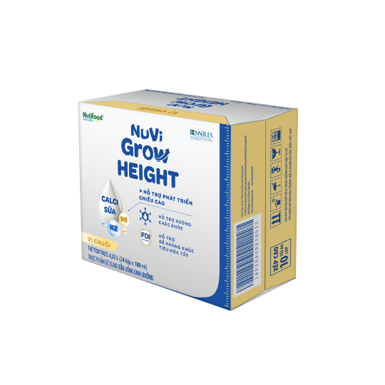 Thùng 24 hộp Sữa bột pha sẵn Nuvi Grow Height Vị Chuối hộp 180ml